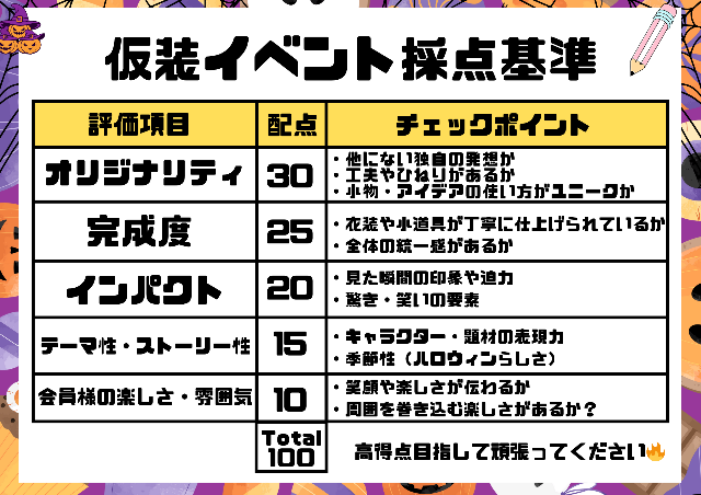 詳しくはスタッフまで!皆様の仮装をお待ちしております!